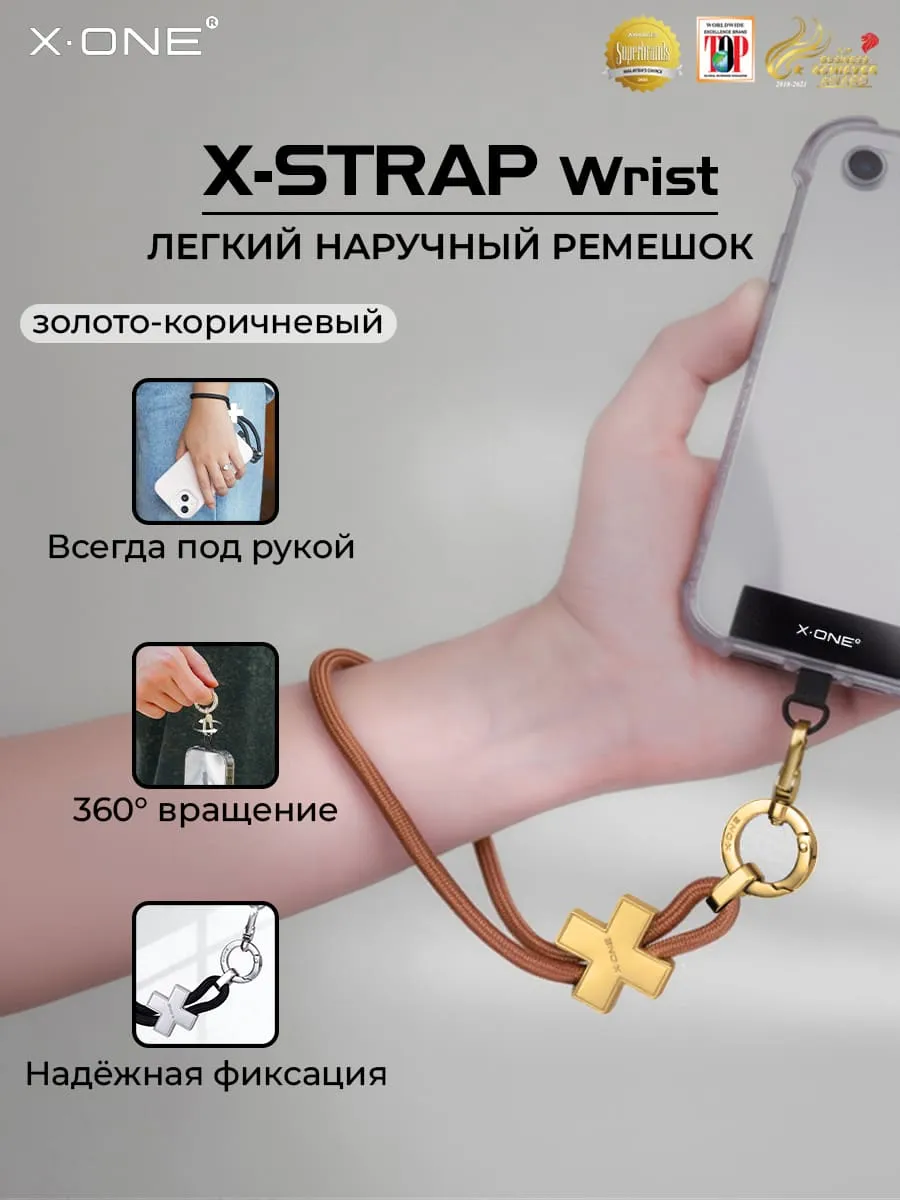 Ремень X-ONE X-Strap Wrist для телефона на руку 18.5см. - золото-коричневый