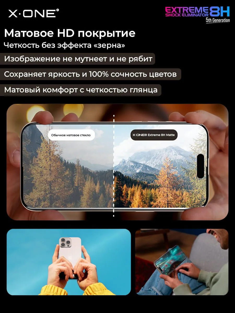 Противоударная матовая бронепленка с гарантией на экран вашего iPhone - 5 месяцев X-ONE Extreme Shock Eliminator 5-го поколения с аппликатором для легкой и точной установки в 2 касания, на ощупь, как экран, по плотности, как стекло — защитная пленка.