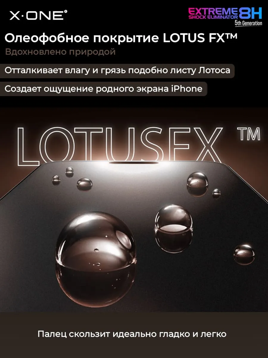 Наслаждайтесь стеклянным скольжением экрана с обновленным олеофобным покрытием LotusFX, создает поверхность сопротивляющуюся маслу и размазыванию, поверхность остается более четкой дольше, обеспечивает более длительный срок службы защиты экрана телефона, позволяет с лёгкостью содержать экран в чистоте.