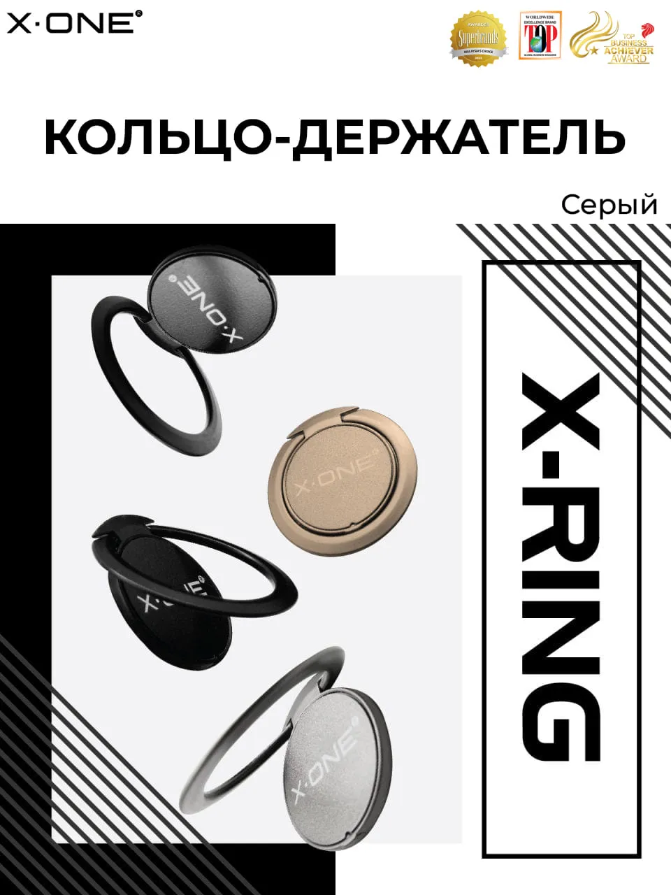 - Комплектация: Фирменная упаковка X-ONE, кольцо-держатель - 1шт.
