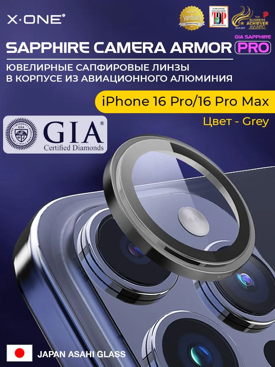 Сапфировое стекло на камеру iPhone 16 Pro/16 Pro Max X-ONE Camera Armor - цвет Grey/ линзы / авиа-алюминиевый корпус