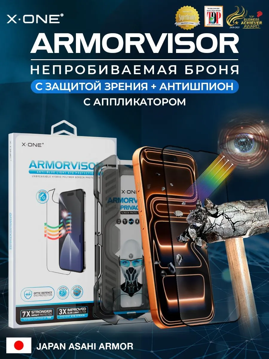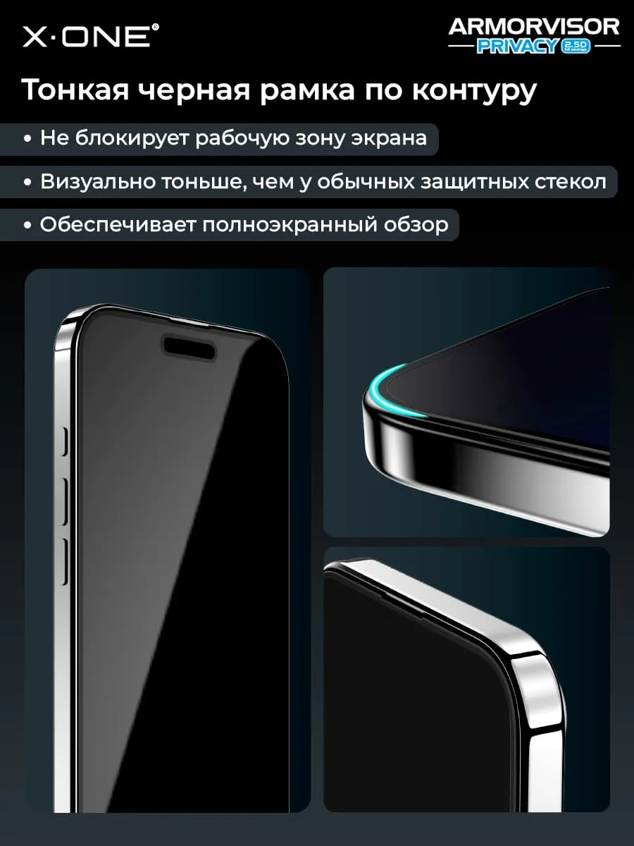 Непробиваемая бронепленка iPhone 17/17 Pro/16 Pro X-ONE Armorvisor Privacy 7H 4-rd generation / фильтрация УФ излучения / защита зрения / Антишпион/ с установочным аппликатором