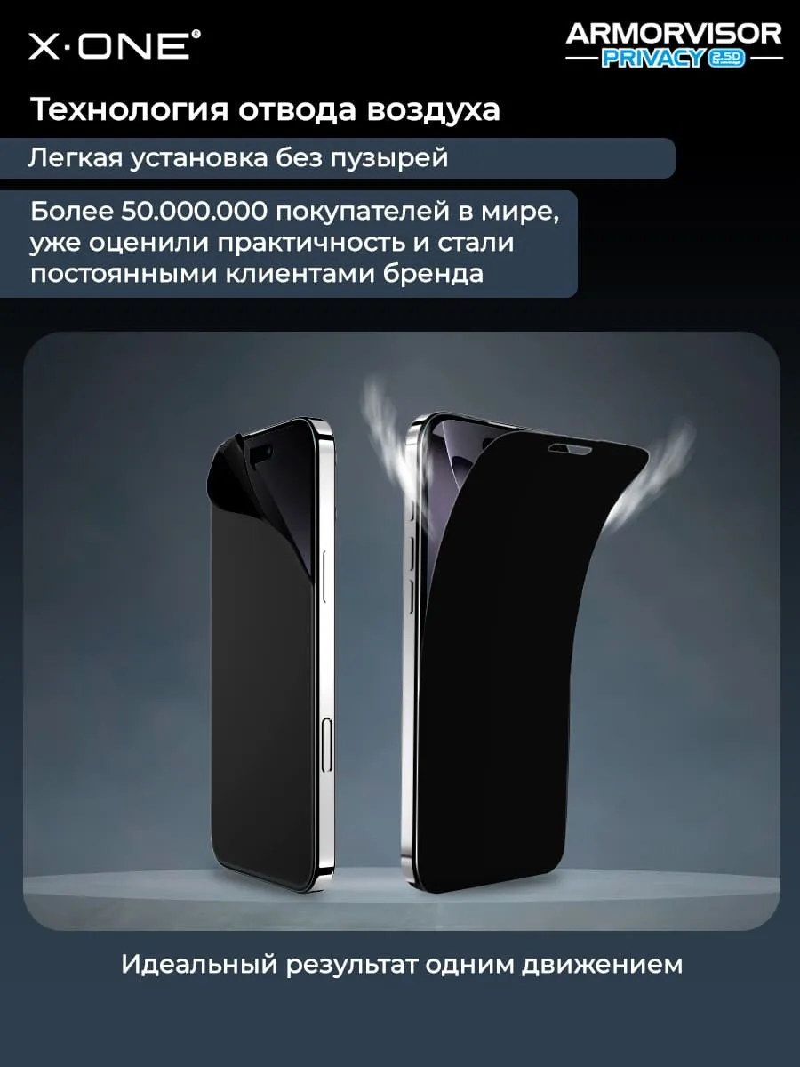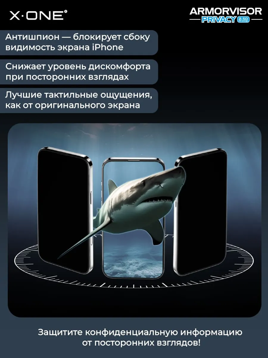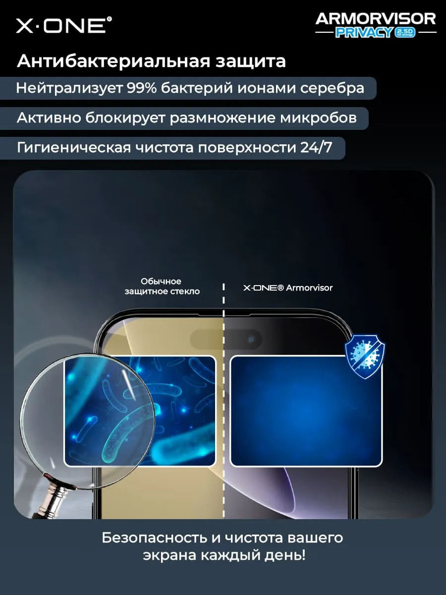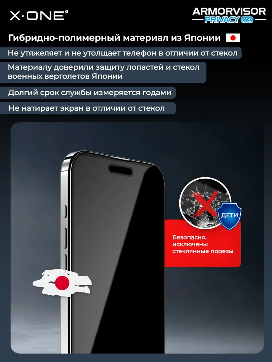 Непробиваемая бронепленка iPhone 17/17 Pro/16 Pro X-ONE Armorvisor Privacy 7H 4-rd generation / фильтрация УФ излучения / защита зрения / Антишпион