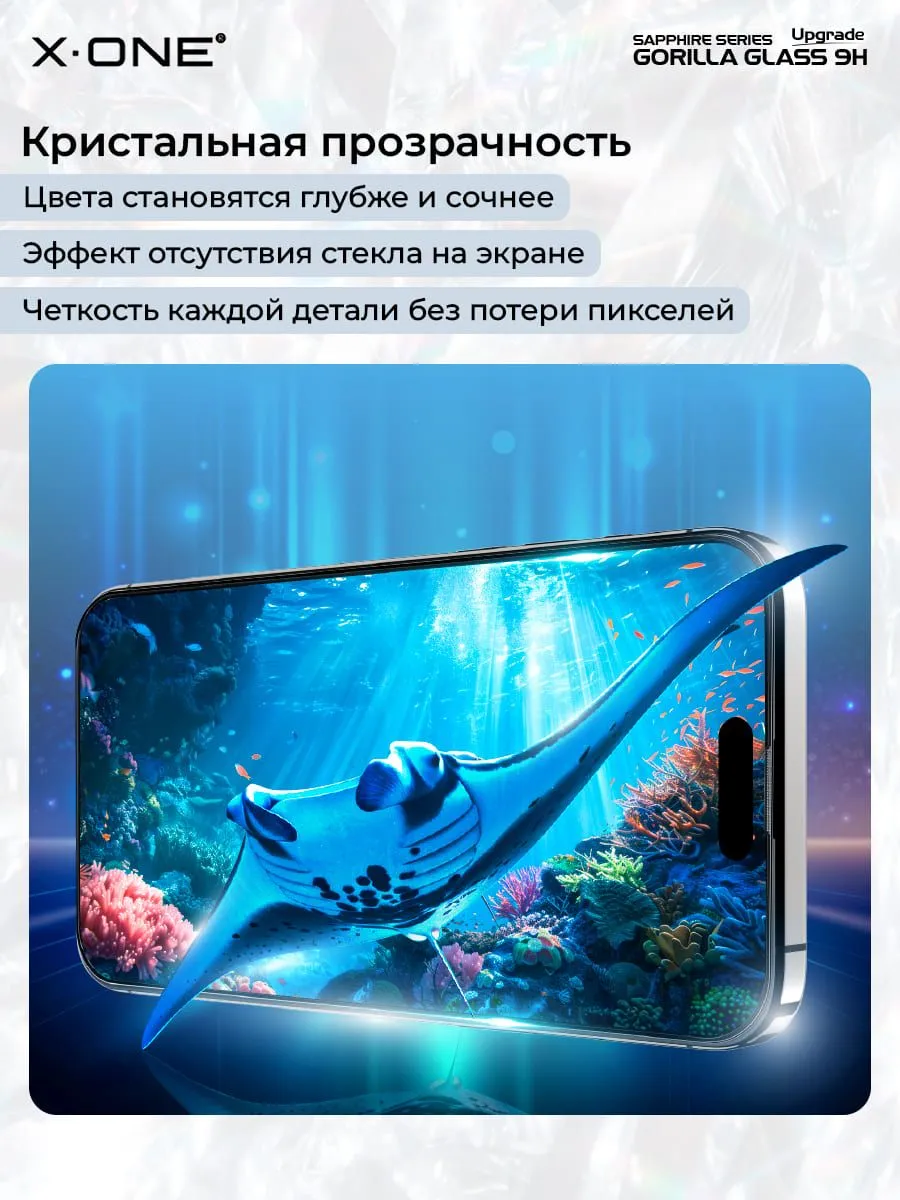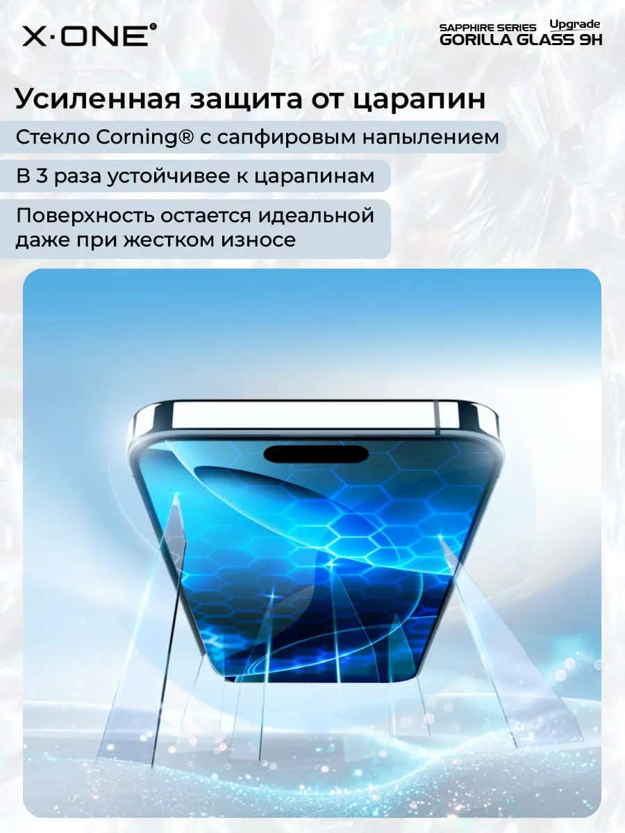Сапфировое стекло iPhone 17 Pro Max X-ONE Sapphire 9H (upgrade) / с фильтром защиты динамика от грязи / противоударное / с установочным аппликатором