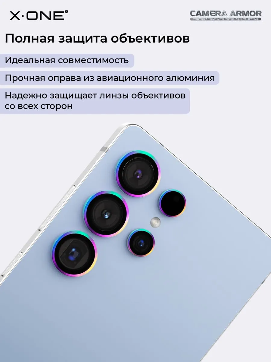 Сапфировое стекло на камеру Samsung Galaxy S24 Ultra X-ONE Camera Armor - цвет Flame / линзы / авиа-алюминиевый корпус